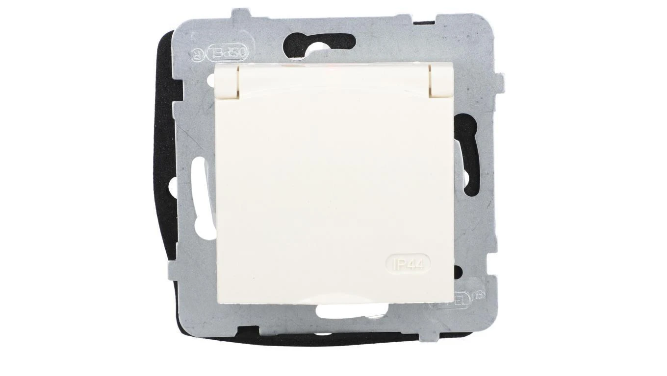 ARIA Gniazdo bryzgoszczelne z/u IP44 wieczko kolor ecru GPH-1UZ/m/27/w