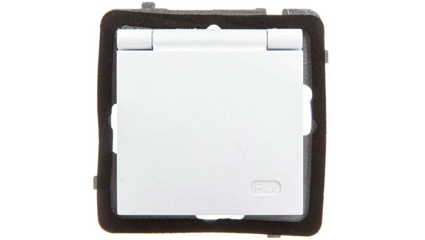 AS Gniazdo bryzgoszczelne z/u Schuko IP44 klapka biała GPH-1GS/m/00/w