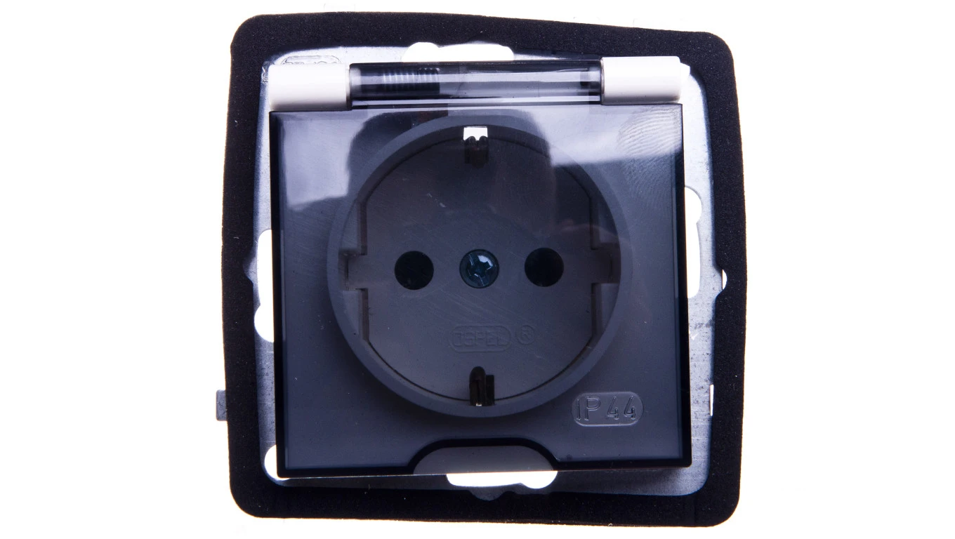 AS Gniazdo bryzgoszczelne z/u Schuko IP44 klapka przezroczysta ecru GPH-1GS/m/27/d