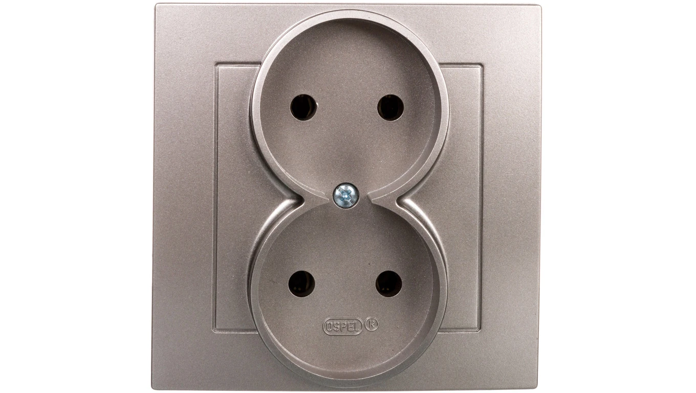 AS Gniazdo podwójne b/u satyna light GP-2G/45