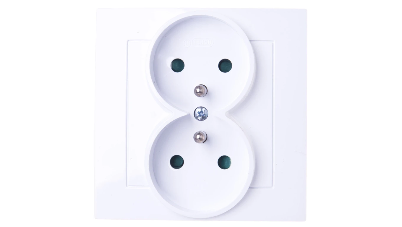 AS Gniazdo podwójne z/u z przesłonami białe GP-2GZP/00