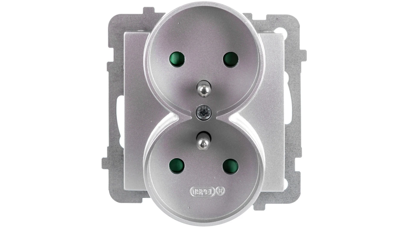 AS Gniazdo podwójne z/u z przesłonami srebro GP-2GRZP/m/18