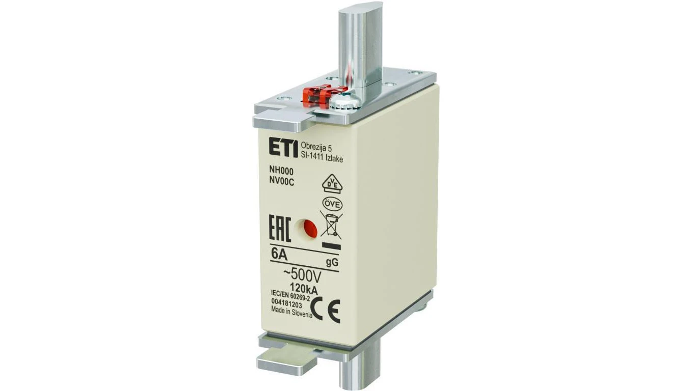 Bezpiecznik nożowy Wkładka topikowa, przemysłowa zwłoczna KOMBI NH000, NH000C gG/gL 6A 500V ETI POLAM
