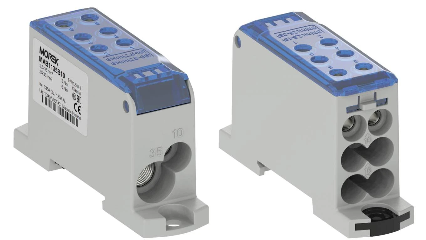 Blok dystrybucyjny - rozdzielczy OJL135A niebieski AL/CU we:1x2,5-35mm2 /1x2,5-10mm2 wy: 4x2,5-16mm2/2x2,5-10mm2 1000V MAB1135B1