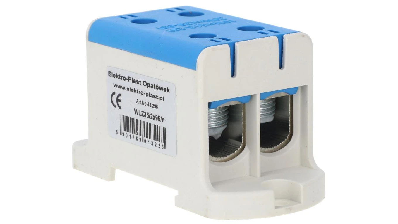 Blok rozdzielczy-odgałęźny 2x1-biegun AL/CU 16-95mm2 niebieski montaż płaski i na szynę TH WLZ35/2x95/n 48.295