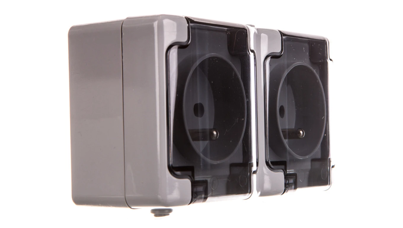 BRYZA Gniazdo hermetyczne podwójne z/u IP54 z klapką dymną szare 180036