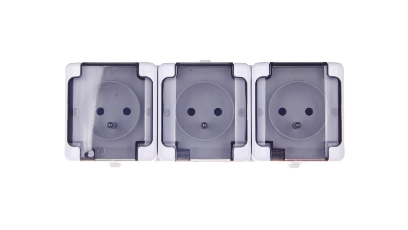 BRYZA Gniazdo hermetyczne potrójne z/u IP54 z klapką dymną białe 181440