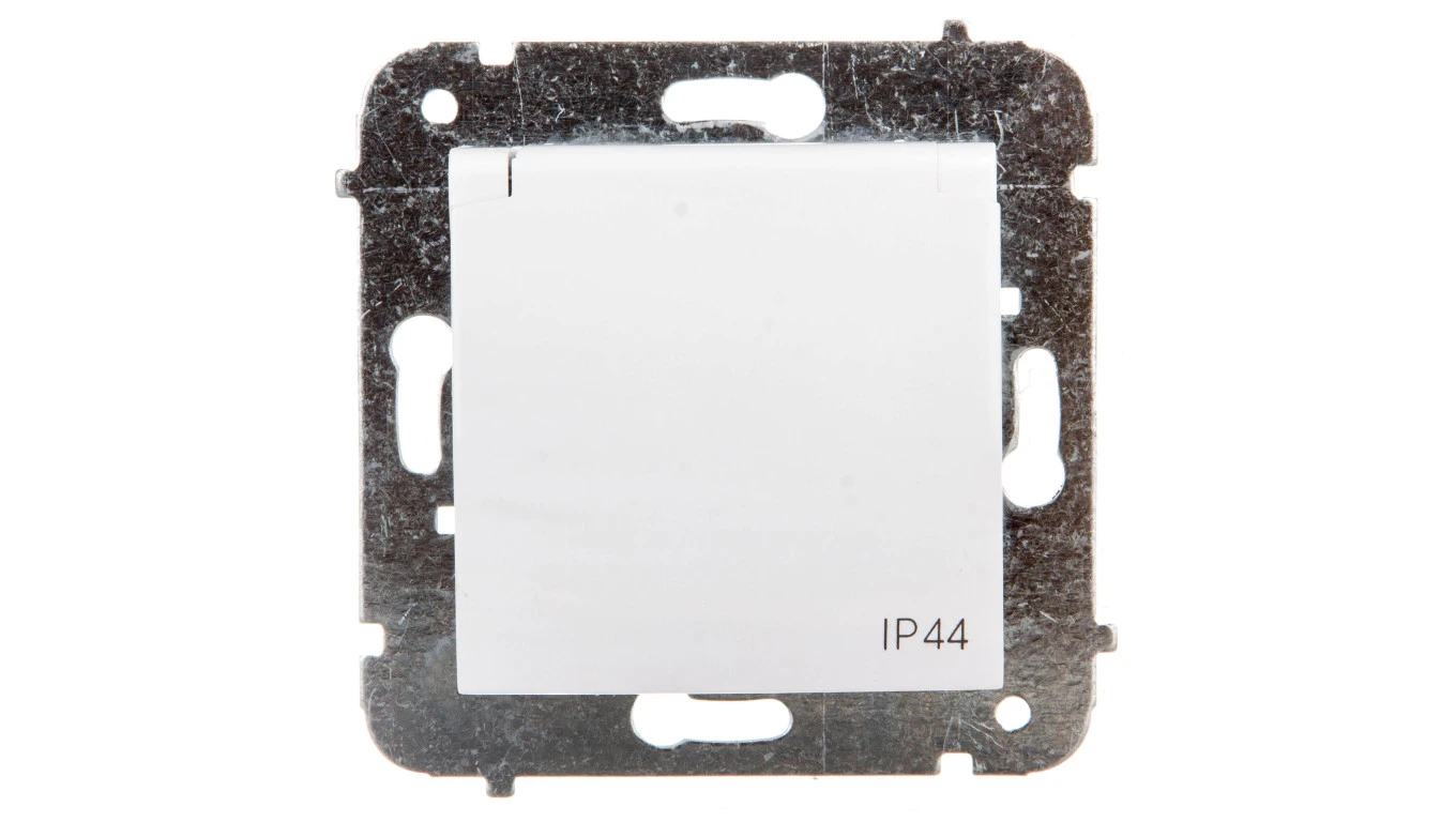 CARLA Gniazdo pojedyncze z/u IP44 z klapką i przesłonami białe 1736-10