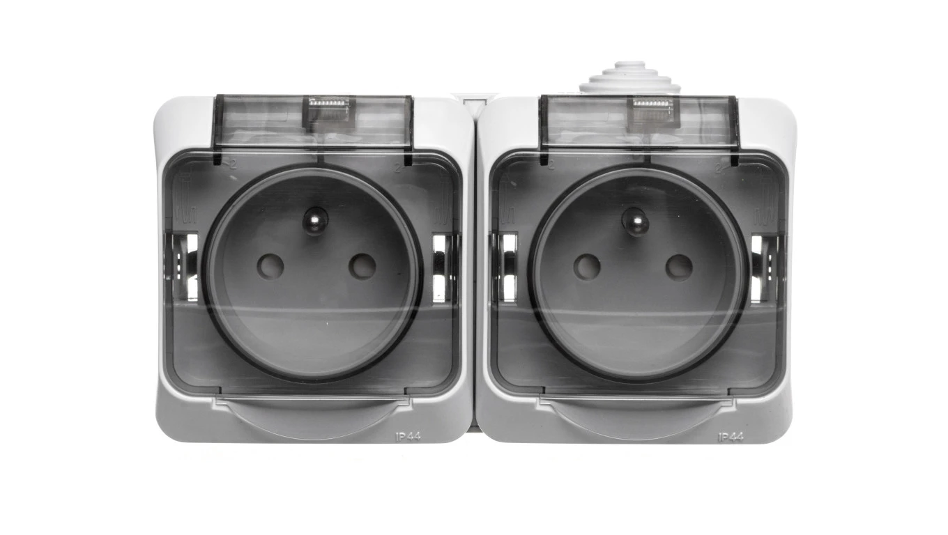 Cedar Plus Gniazdo hermetyczne podwójne z/u 16A IP44 szare WDE000624