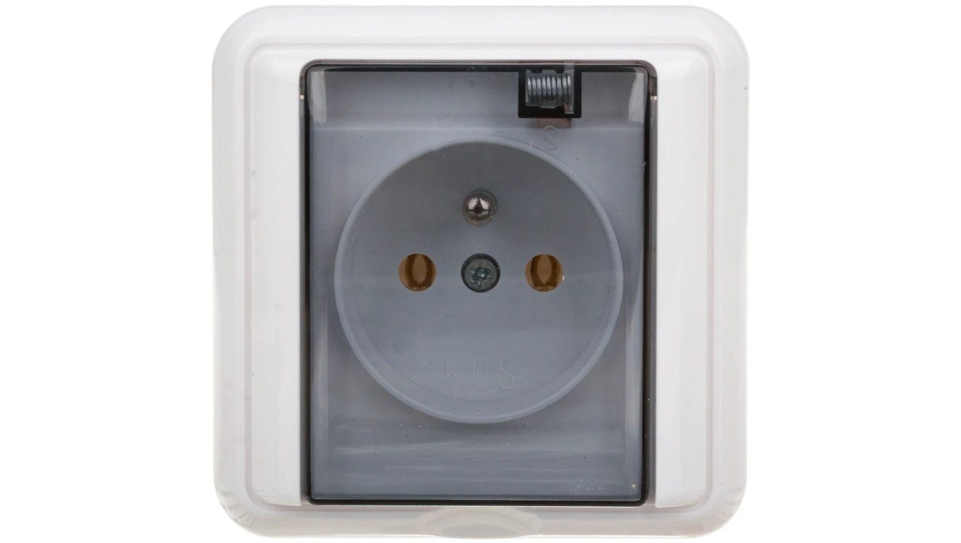 COSMO Gniazdo bryzgoszczelne z/u IP44 klapka dymna białe 331439