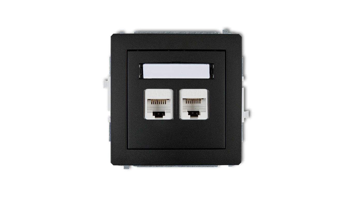 DECO Gniazda komputerowe podwójne 2xRJ45, kat. 6, ekranowane, 8-stykowy czarny mat 12DGK-6