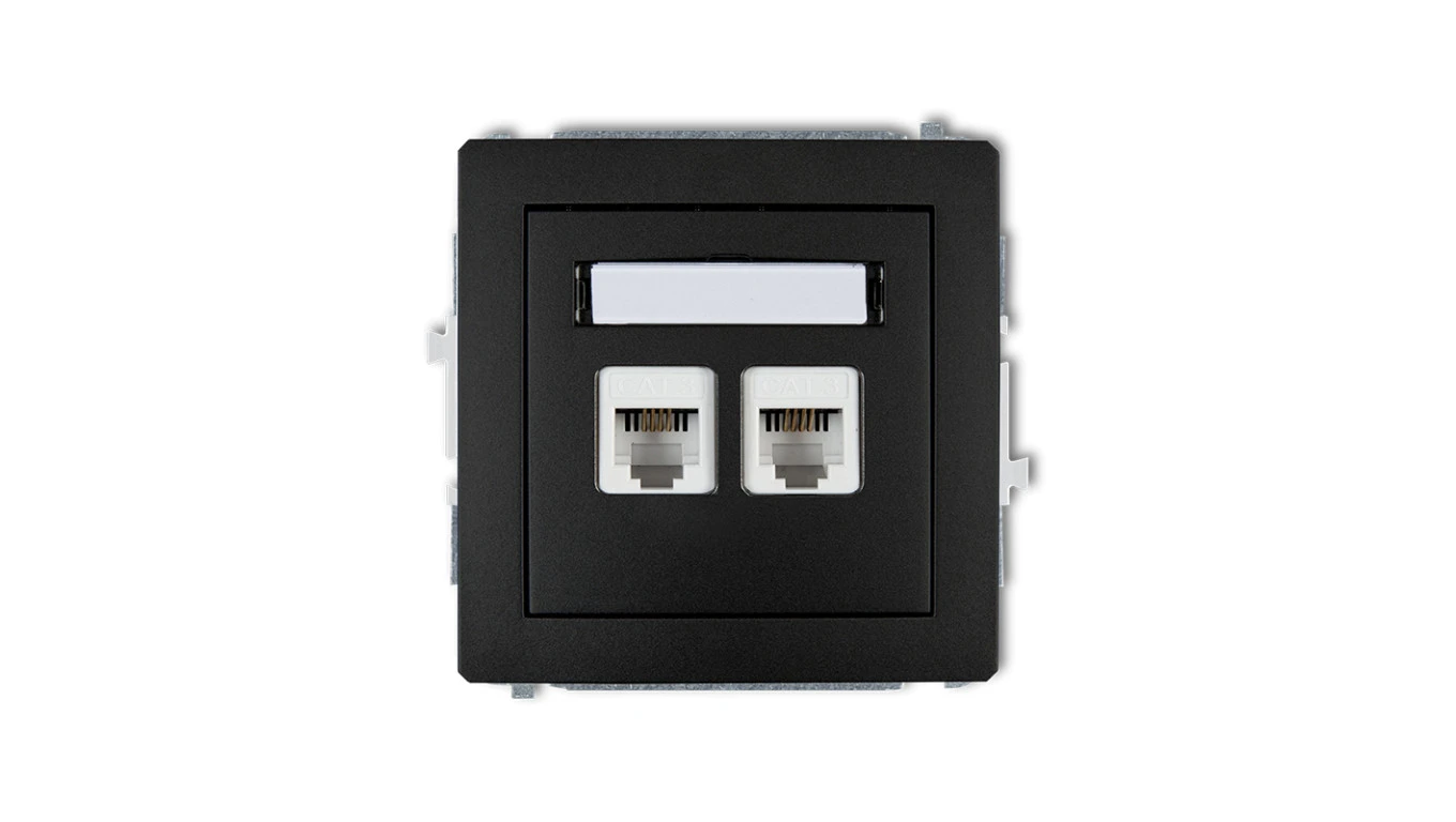 DECO Gniazda telefoniczne podwójne 2xRJ11, 4-stykowy, beznarzędziowe czarny mat 12DGT-2
