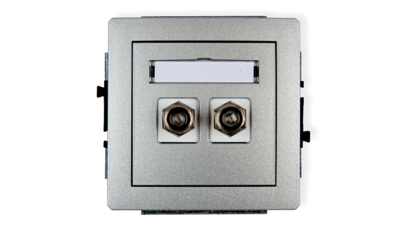 DECO Gniazdo antenowe podwójnego typu F (SAT) niklowany srebrny metalik 7DGF-2