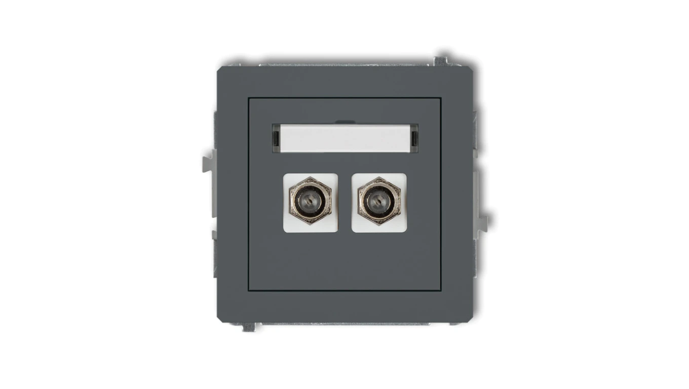 DECO Gniazdo antenowe podwójny typu F (SAT) niklowany grafitowy mat 28DGF-2