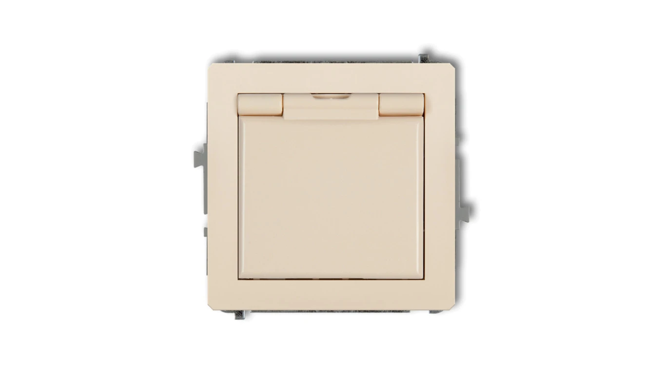 DECO Gniazdo bryzgoszczelne z/u SCHUKO (klapka beżowa) beżowy 1DGPB-1sp