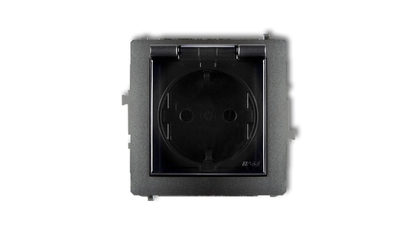 DECO Gniazdo bryzgoszczelne z/u SCHUKO (klapka dymna) grafitowy 11DGPB-1sdp