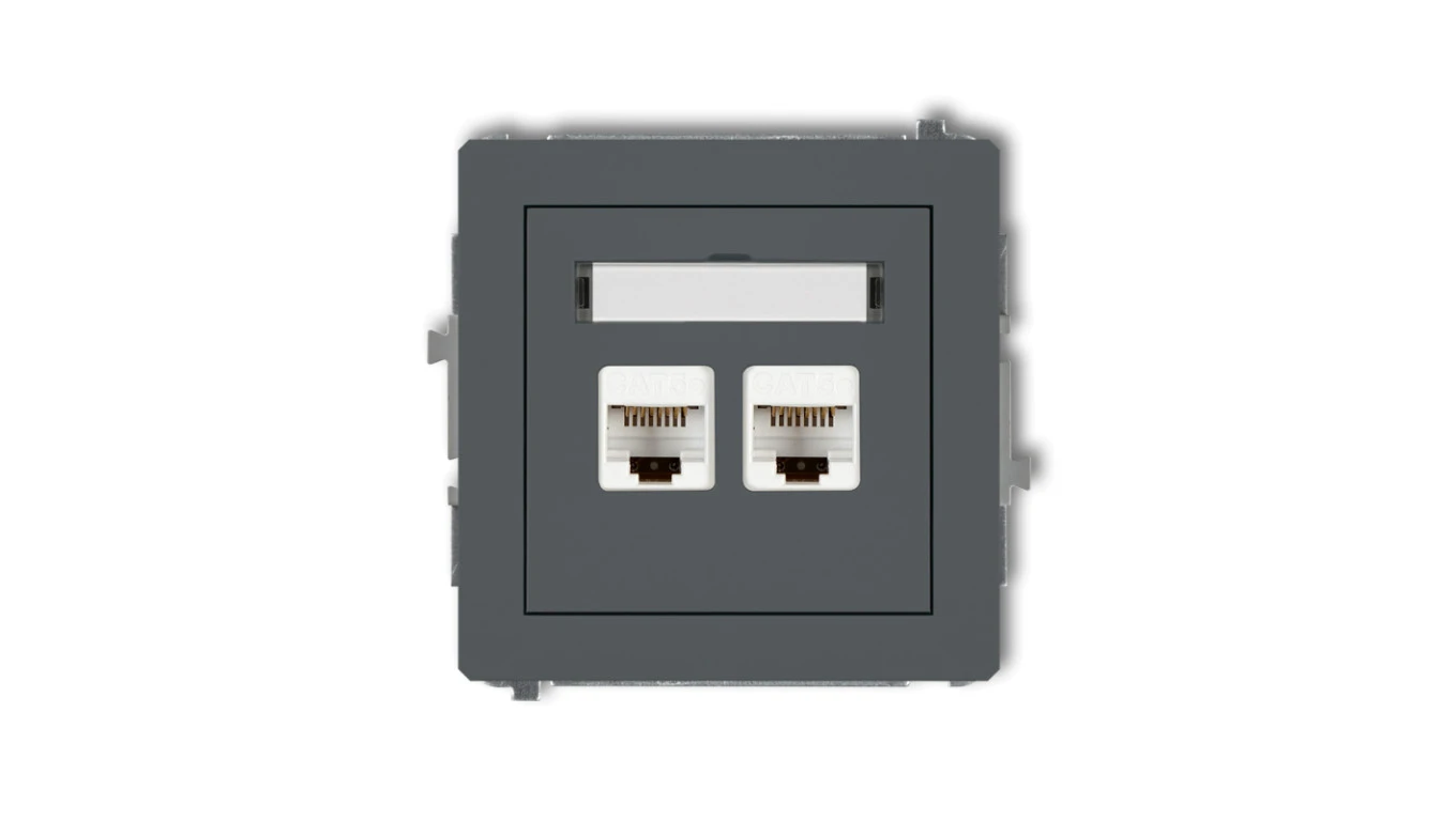 DECO Gniazdo komputerowe podwójny 2xRJ45, kat. 5e, 8-stykowy grafitowy mat 28DGK-2