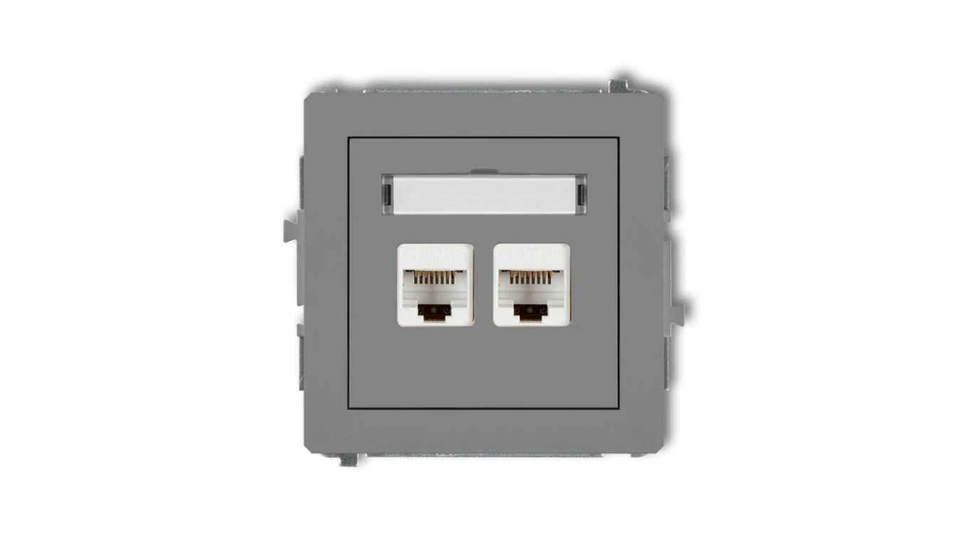 DECO Gniazdo komputerowe podwójny 2xRJ45, kat. 6, ekranowane, 8-stykowy szary mat 27DGK-6