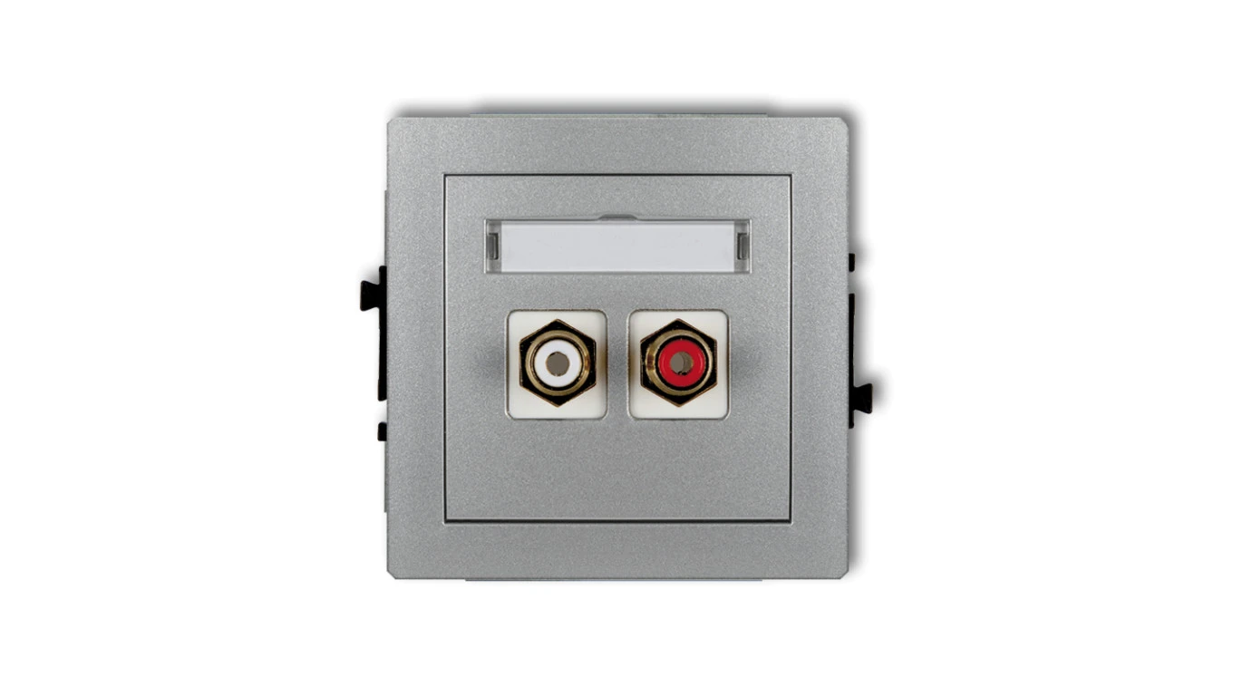 DECO Gniazdo podwójne RCA (typu cinch - biały i czerwony, pozłacany) srebrny metalik 7DGRCA-2