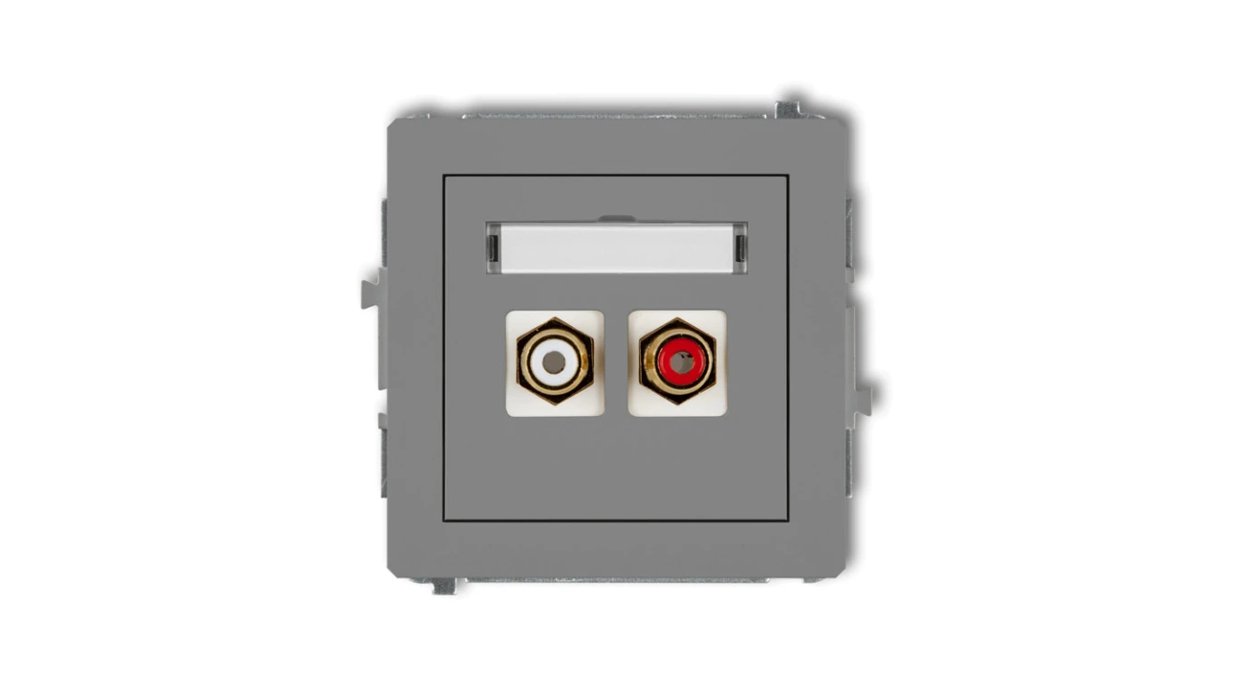 DECO Gniazdo podwójne RCA (typu cinch - biały i czerwony, pozłacany) szary mat 27DGRCA-2