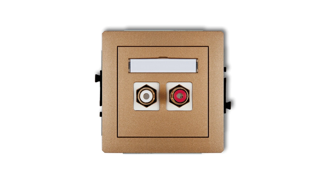 DECO Gniazdo podwójne RCA (typu cinch - biały i czerwony, pozłacany) złoty metalik 8DGRCA-2