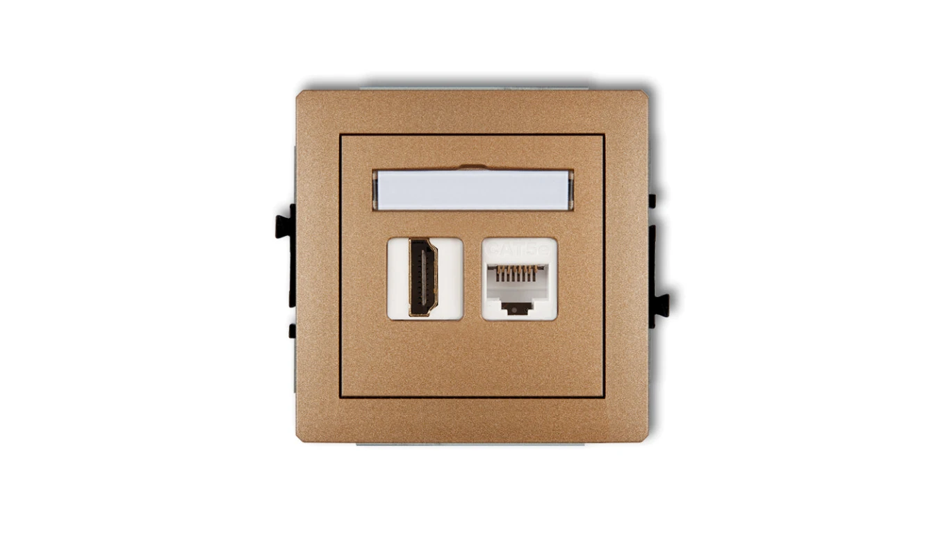 DECO Gniazdo pojedyncze HDMI + Gniazdo komputerowe pojedyncze 1xRJ45, kat. 5e, 8-stykowy złoty metalik 8DGHK
