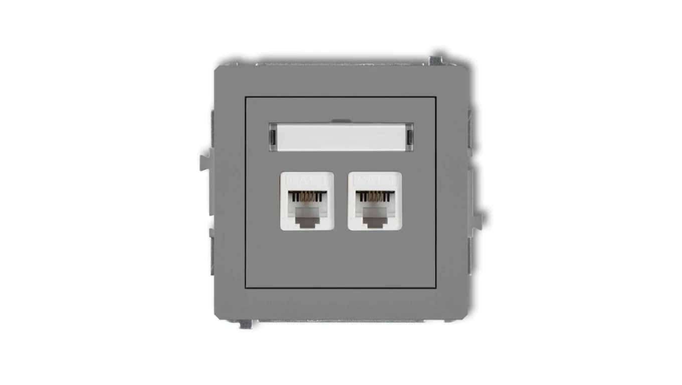 DECO Gniazdo telefoniczne podwójny 2xRJ11, 4-stykowy, beznarzędziowe szary mat 27DGT-2