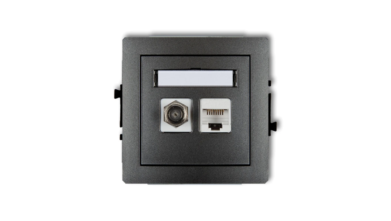 DECO Mechanizm gniazda antenowego poj. typu F (SAT) + gniazda komp. poj. 1xRJ45, kat. 6, 8-stykowy grafitowy 11DGFK-3