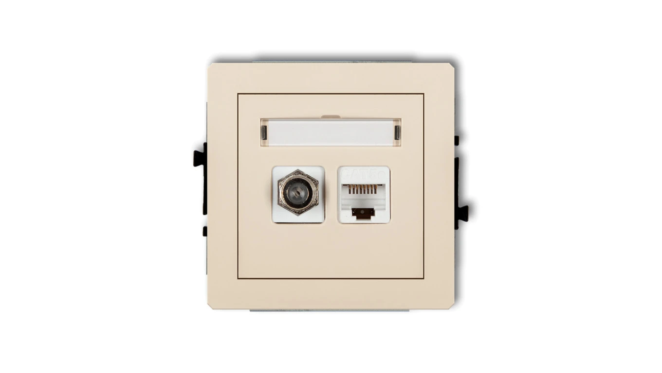 DECO Mechanizm gniazda antenowego poj. typu F (SAT) + gniazda komp. poj. 1xRJ45, kat. 6 ekranowane, 8-stykowy beżowy 1DGFK-5