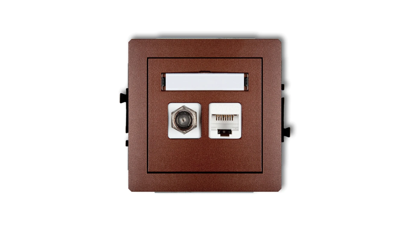 DECO Mechanizm gniazda antenowego poj. typu F (SAT) + gniazda komp. poj. 1xRJ45, kat. 6 ekranowane, 8-stykowy brązowy metalik 9D