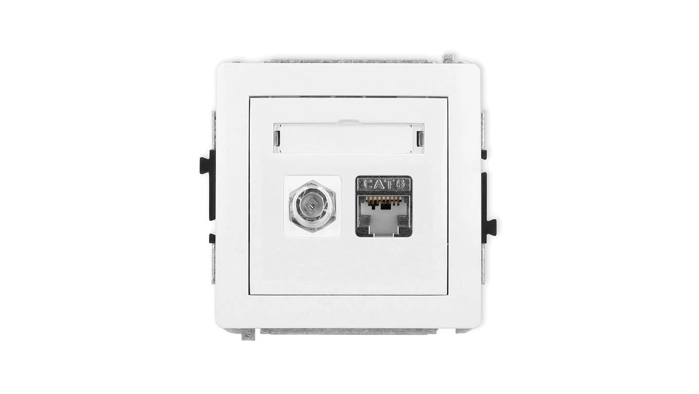 DECO Mechanizm gniazda antenowego poj. typu F (SAT) + gniazda komp. poj. 1xRJ45, kat. 6 ekranowe, 8-stykowy, biały mat 25DGFK-5