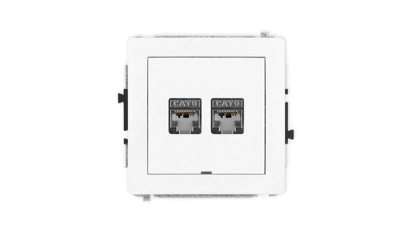 DECO Mechanizm gniazda komputerowego podwójnego 2xRJ45, kat. 6, ekranowane, 8-stykowy, bez pola opisowego, biały mat 25DGKBO-6
