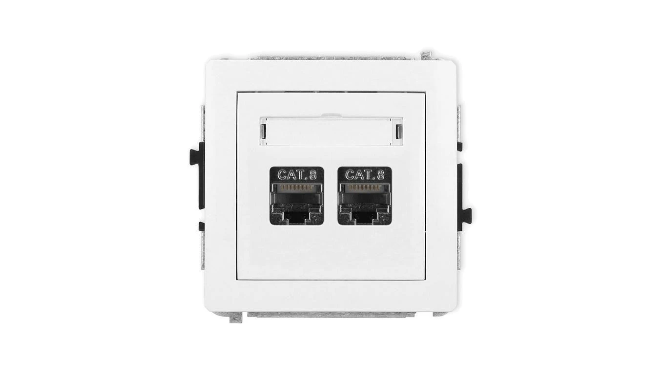 DECO Mechanizm gniazda komputerowego podwójnego 2xRJ45, kat. 8, ekranowane, 8-stykowy, biały mat 25DGK-12