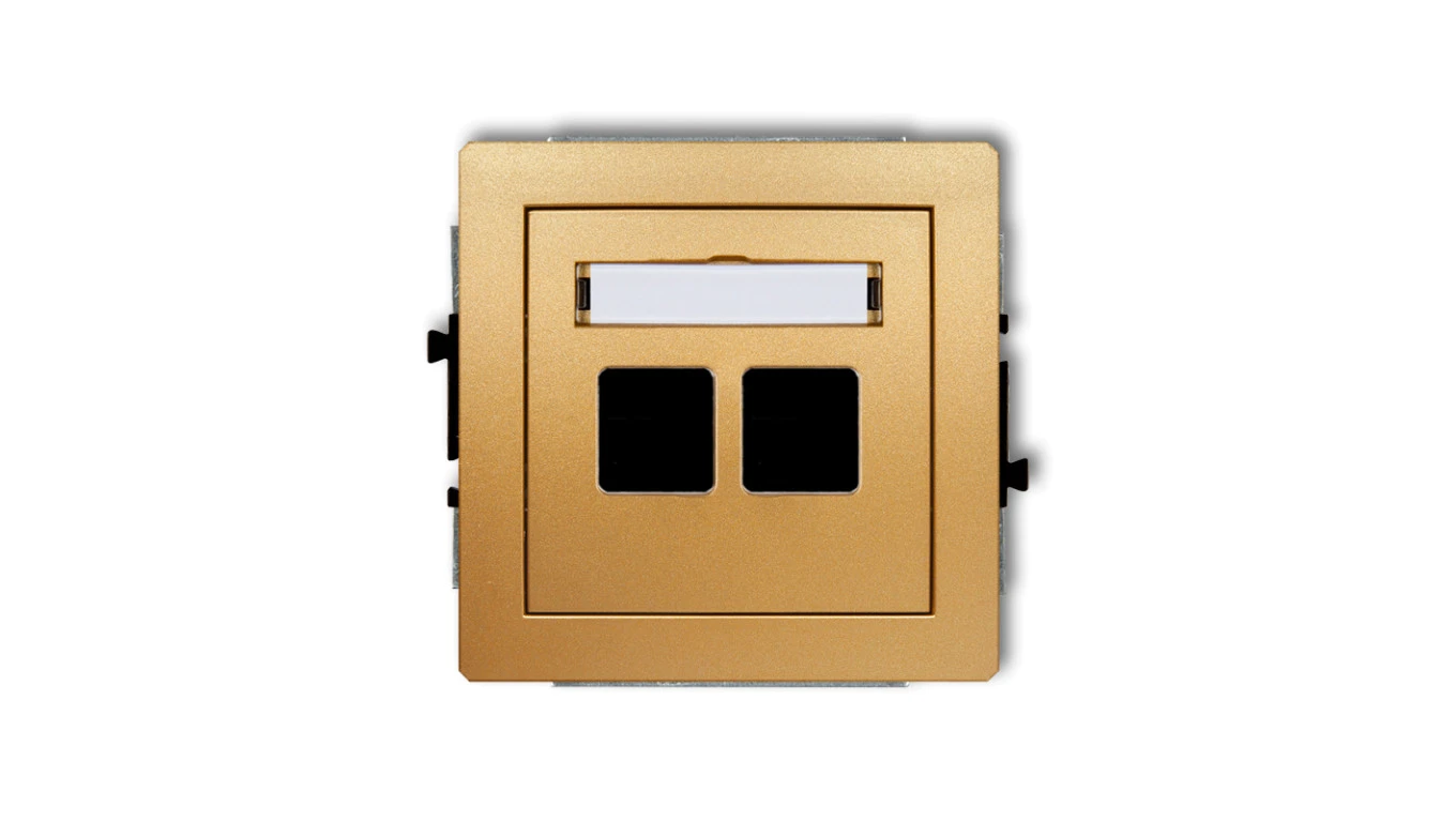 DECO Mechanizm gniazda multimedialnego podwójnego bez modułu (standard Keystone) złoty 29DGM-2P
