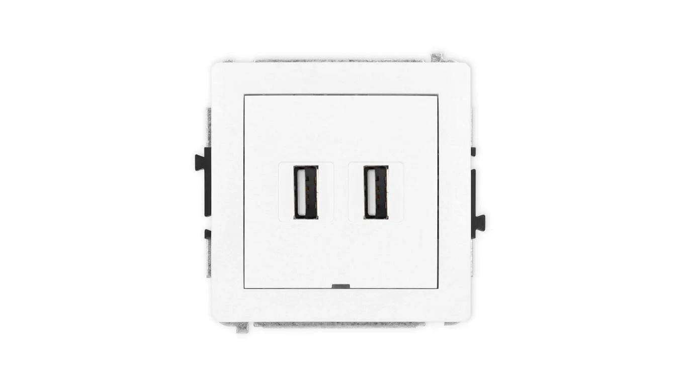 DECO Mechanizm gniazda podwójnego 2xUSB A-A 2.0, bez pola opisowego, biały mat 25DGUSBBO-2