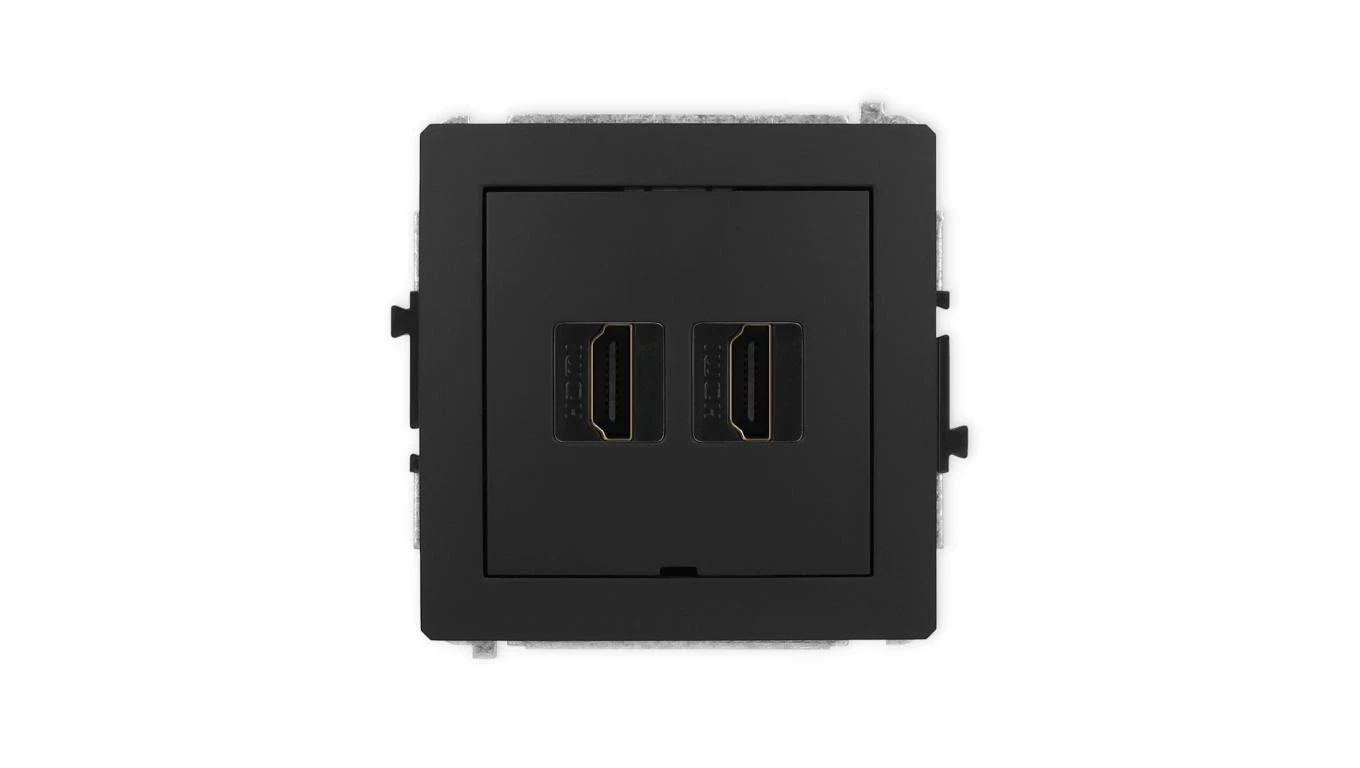 DECO Mechanizm gniazda podwójnego HDMI 2.1, 8K, bez pola opisowego czarny mat 12DHDMIBO-6