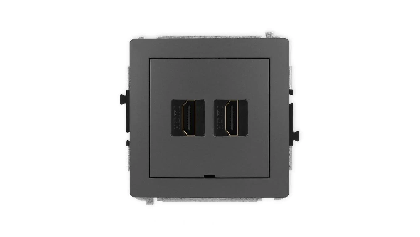DECO Mechanizm gniazda podwójnego HDMI 2.1, 8K, bez pola opisowego grafitowy mat 28DHDMIBO-6