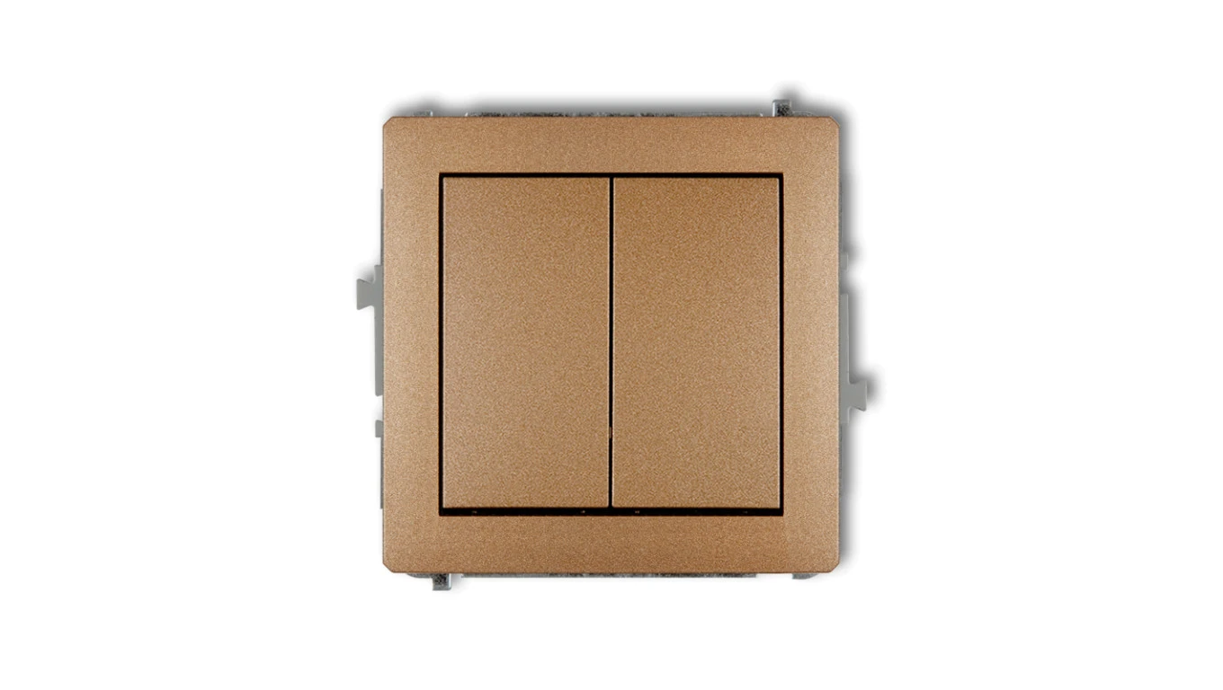 DECO Mechanizm łącznika jednobiegunowego ze schodowym (dwa klawisze bez piktogramów, osobne zasilanie) złoty metalik 8DWP-10.21