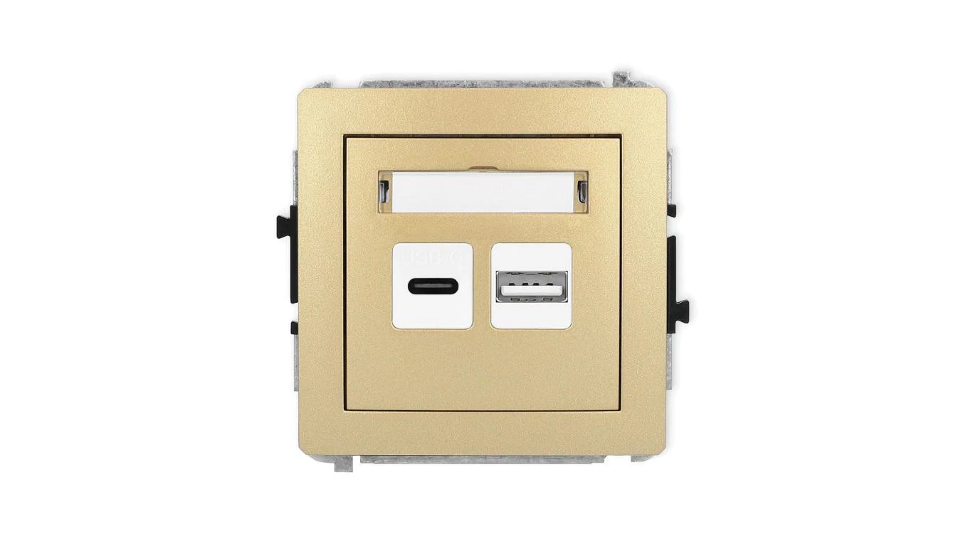 DECO Mechanizm ładowarki USB podwójnej USB C + USB A, 20W max., złoty 29DCUSB-8