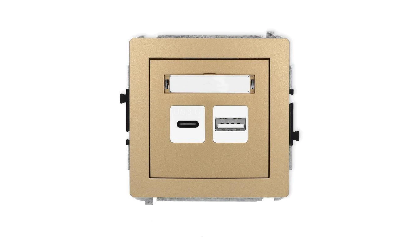 DECO Mechanizm ładowarki USB podwójnej USB C + USB A, 20W max., złoty metalik 8DCUSB-8