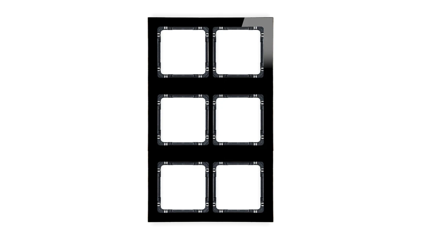 DECO Ramka modułowa 6 krotna (2 poziom, 3 pion) - efekt szkła (ramka czarna spód czarny) czarny 12-12-DRSM-2x3