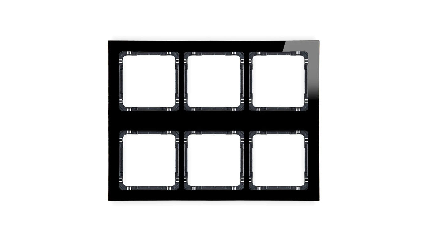 DECO Ramka modułowa 6 krotna (3 poziom, 2 pion) - efekt szkła (ramka czarna spód czarny) czarny 12-12-DRSM-3x2