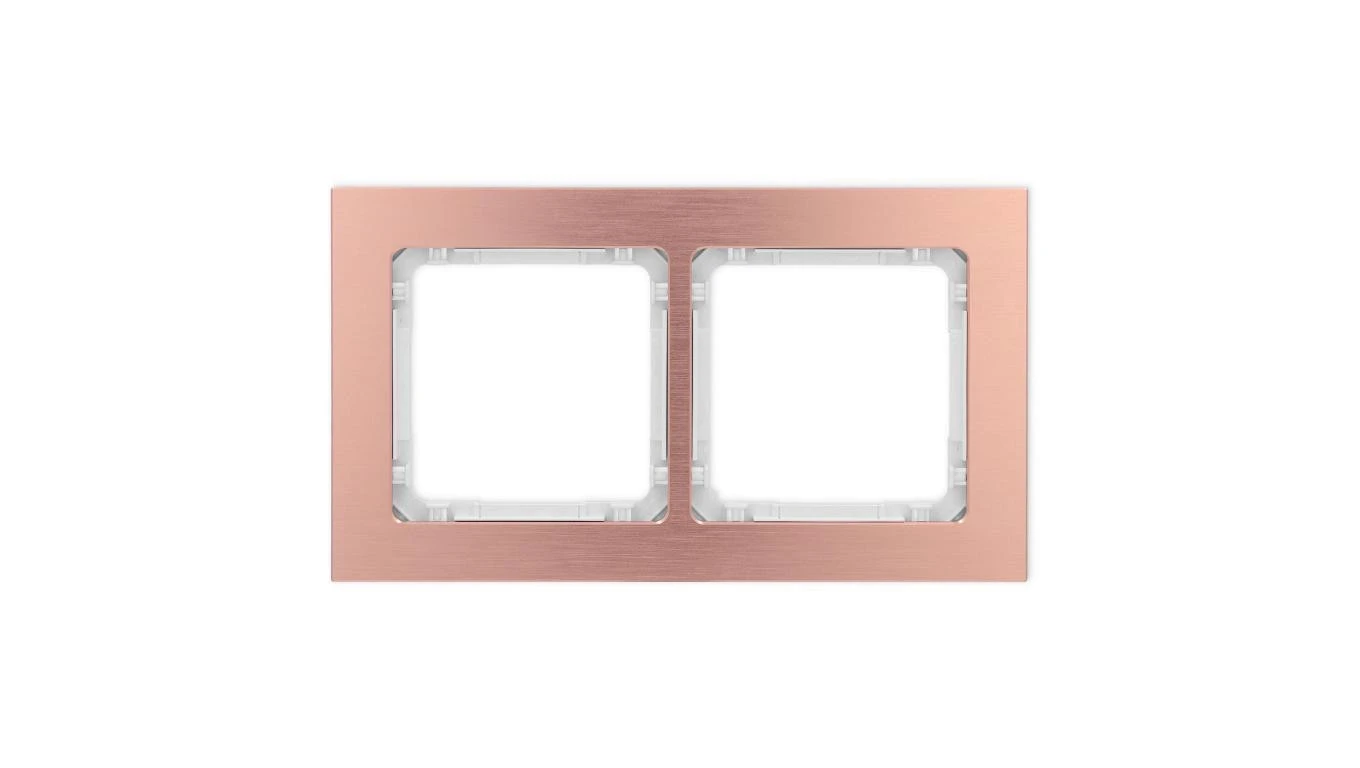 DECO Ramka uniwersalna podwójna - aluminium szczotkowane (ramka: kolor miedziany spód: biały) 9-0-DRA-2