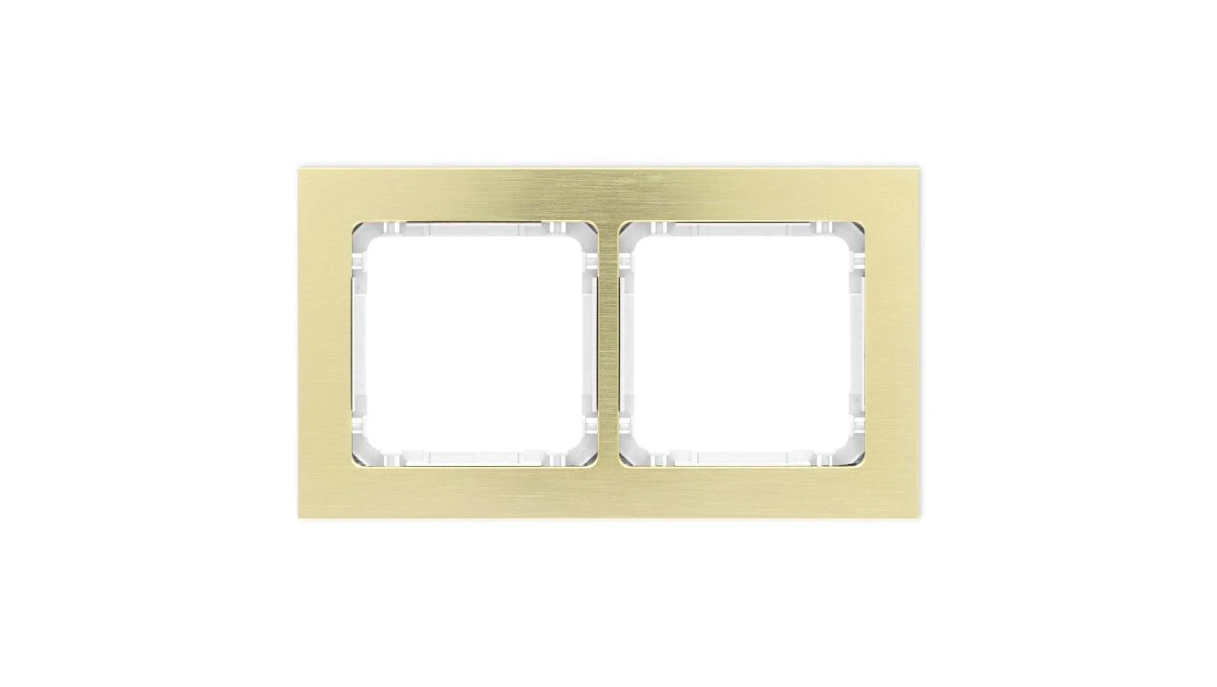 DECO Ramka uniwersalna podwójna - aluminium szczotkowane (ramka: kolor mosiężny spód: biały) 8-0-DRA-2