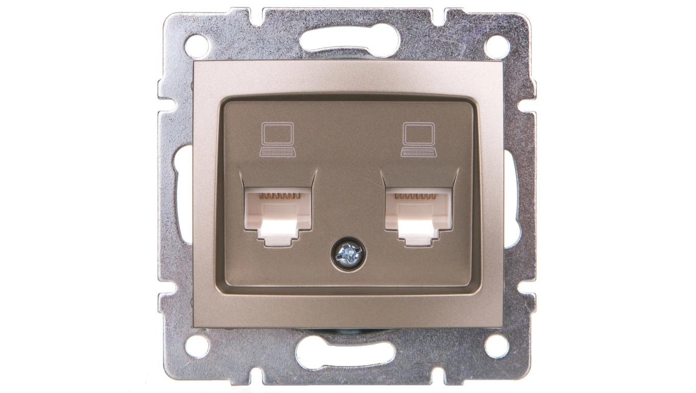 DOMO Gniazdo komputerowe podwójne niezależne 2x RJ45Cat 5e Jack szampańskie 011410050 25050