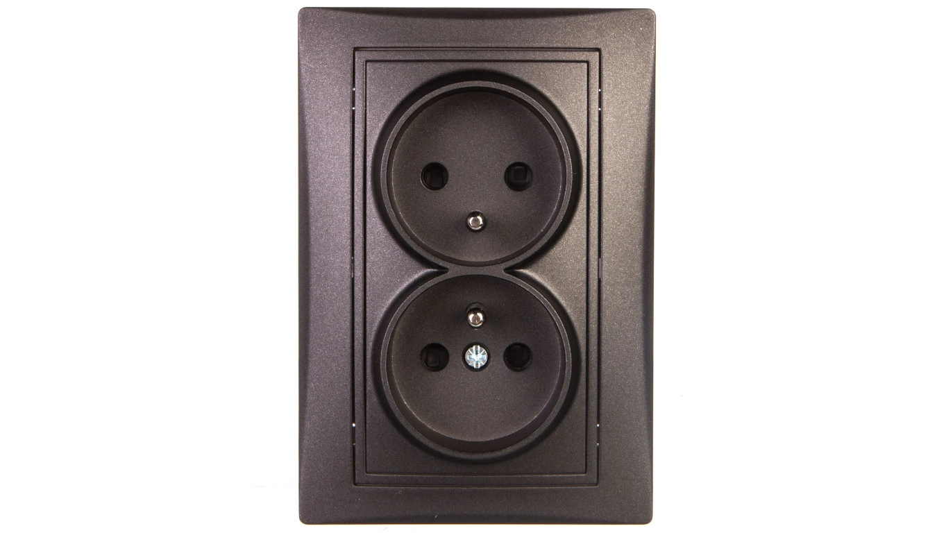 DOMO Gniazdo podwójne kompletne ochrona styków śrubowe 16A 250V grafit 011260141 24915