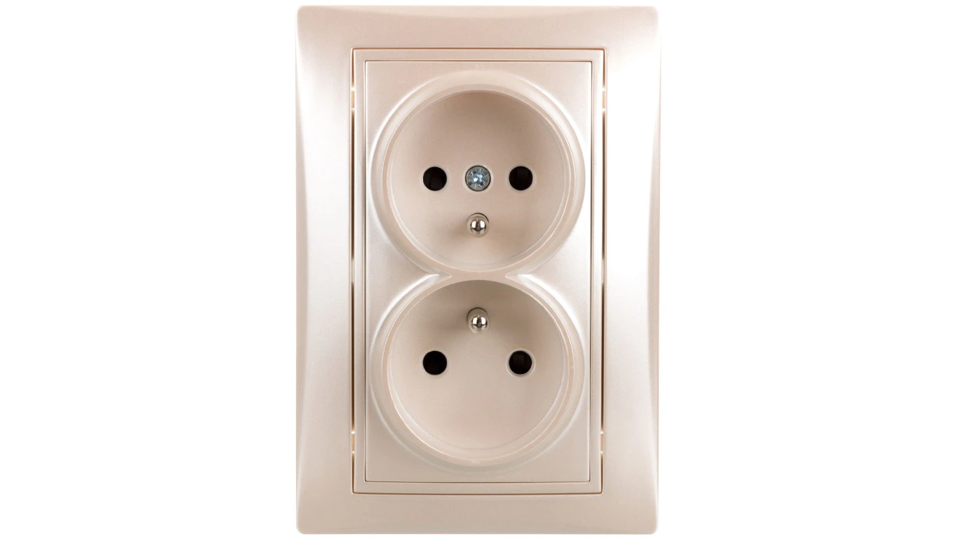 DOMO Gniazdo podwójne kompletne ochrona styków śrubowe 16A 250V perłowy biały 011260130 24974
