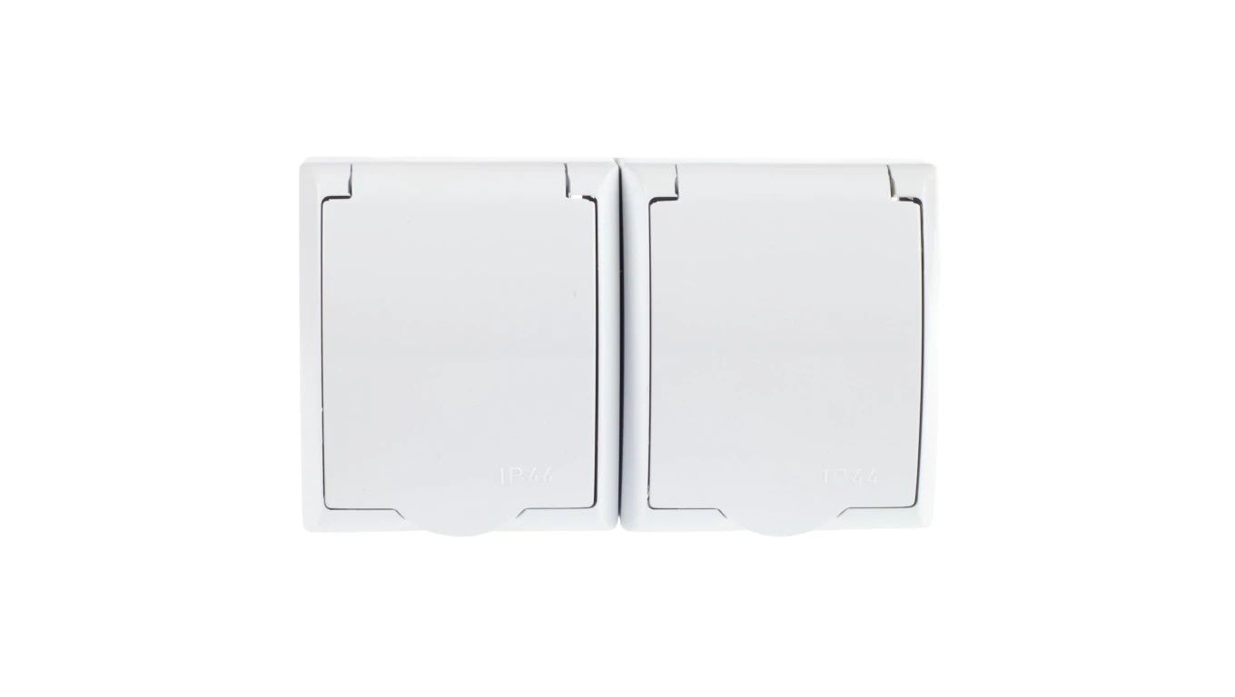 FALA Gniazdo hermetyczne podwójne z/u Schuko IP44 klapka biała GNH-2HS/00/w
