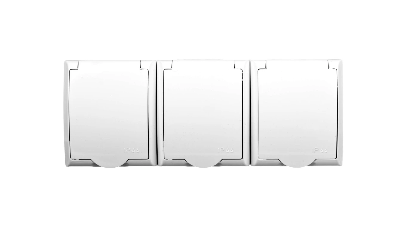 FALA Gniazdo hermetyczne potrójne z/u IP44 klapka biała GNH-3HZ/00/w