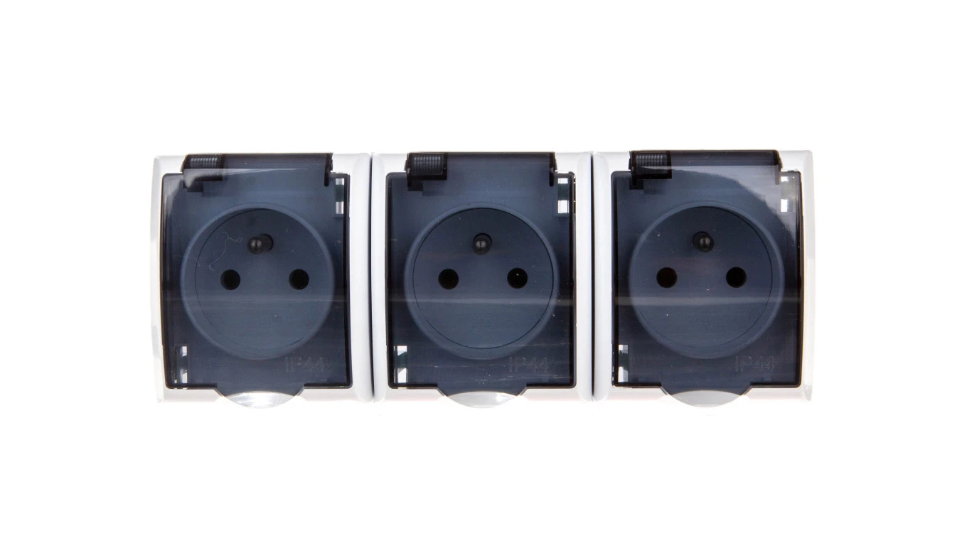 FALA Gniazdo hermetyczne potrójne z/u IP44 klapka przezroczysta białe GNH-3HZ/00/d